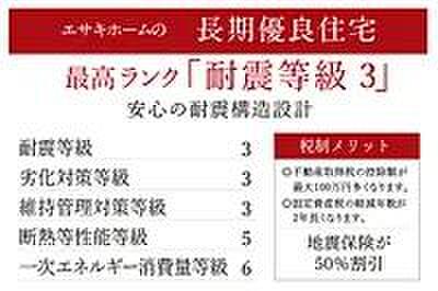 耐震等級3を取得しているので、地震にも安心の住まいです。