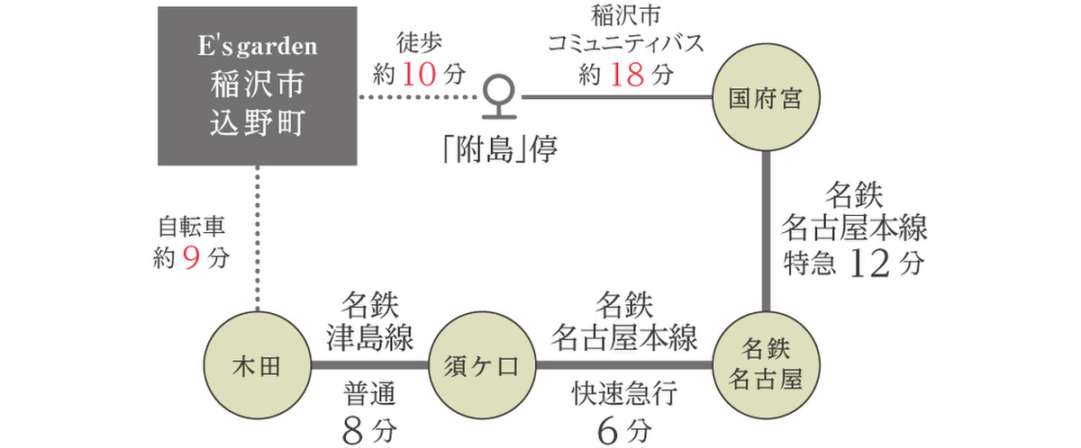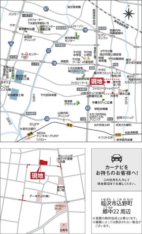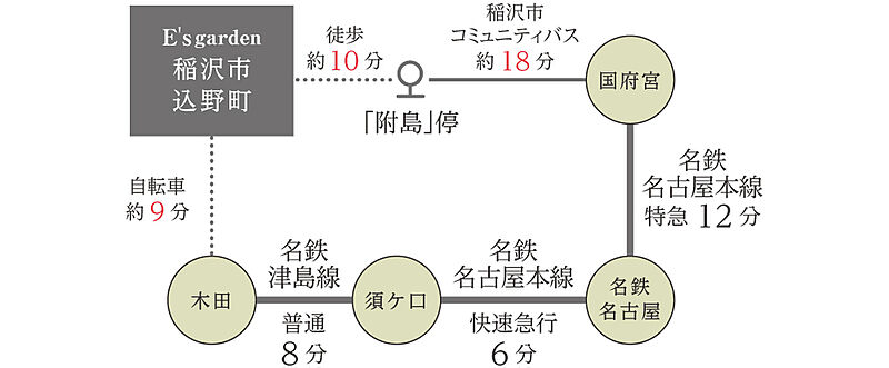 名鉄津島線「木田」駅 徒歩27分 自転車約9分 稲沢市コミュニティバス「附島」停 徒歩10分 |