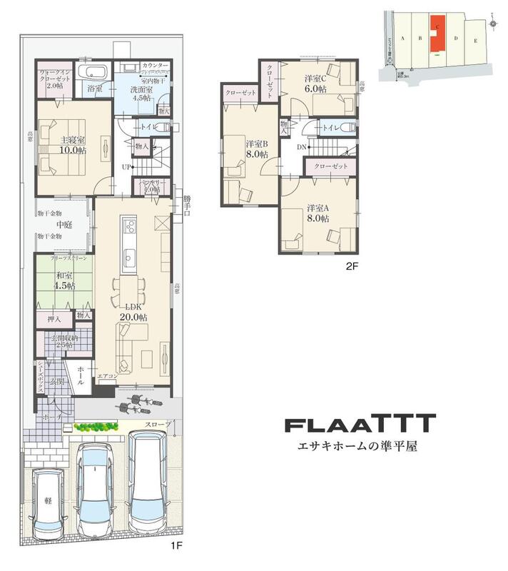 | 建物面積 | 140.51m2(42.50坪)~142.52m2(42.50坪) | 土地面積 | 180.15m2(54.49坪) ~ 180.16m2(54.49坪) |