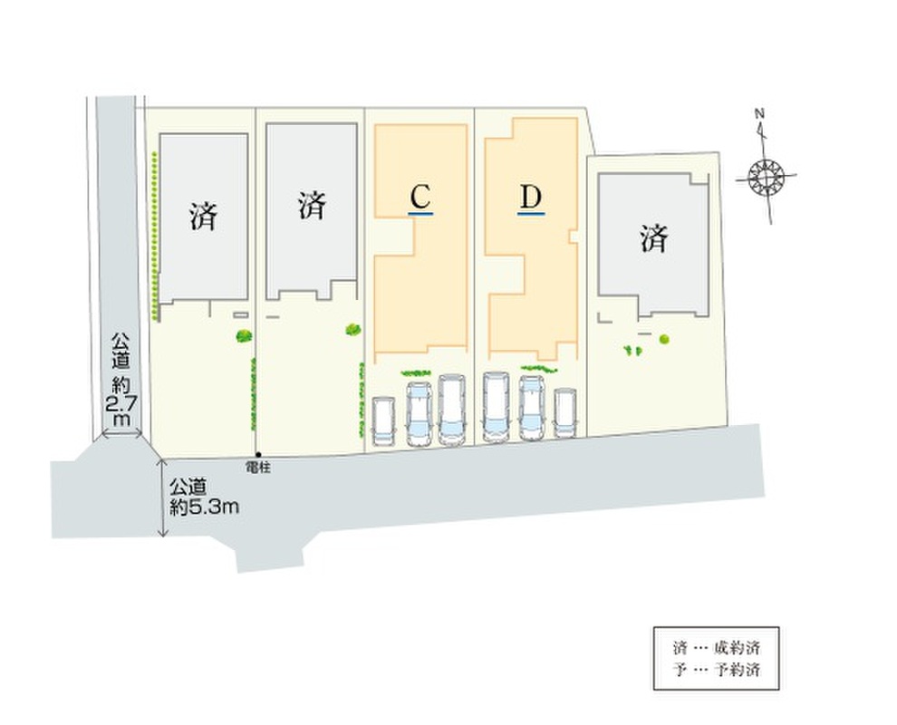 | 駐車場 | 3台(C・D棟(3台)) | 道路の幅員 | 南側幅員約5.3m |