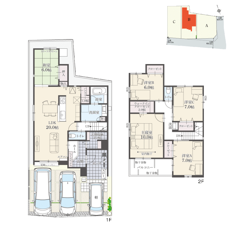 | 建物面積 | 137.39m2(41.56坪)~139.49m2(42.19坪) | 土地面積 | 132.23m2(39.99坪)~139.77m2(42.28坪) |