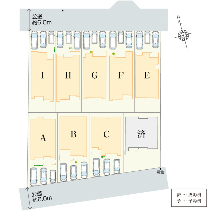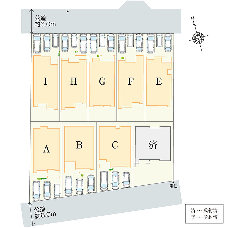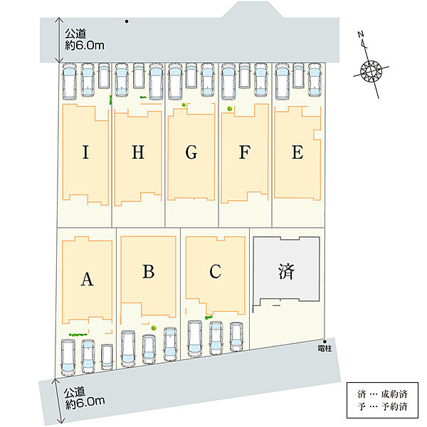 | 駐車場 | 3台 | 道路の幅員 | A・B・C棟:公道南側約6.0m、E・F・G・H・I棟:公道北側約6.0m |