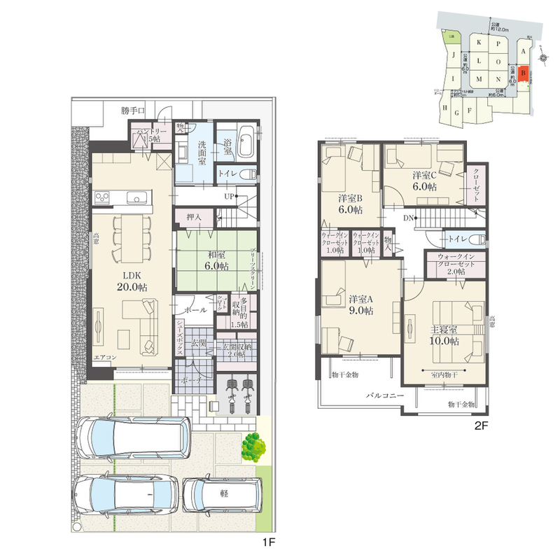 | 建物面積 | 141.18m2(42.70坪)~146.03m2(44.17坪) | 土地面積 | 160.00m2(48.40坪)~160.02m2(48.40坪) |