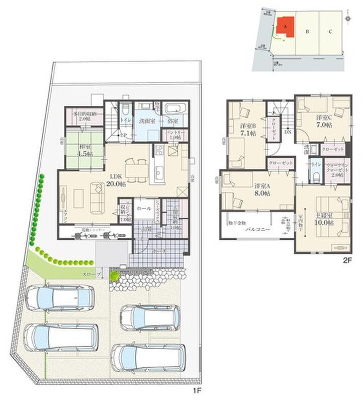 ・LDK20.0帖&主寝室10.0帖のゆとりある5LDK。
