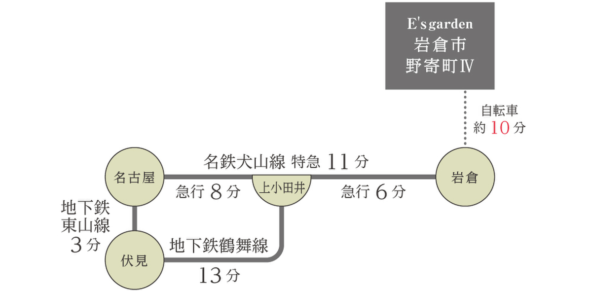 名鉄犬山線「岩倉」駅 徒歩29分 自転車約10分 |
