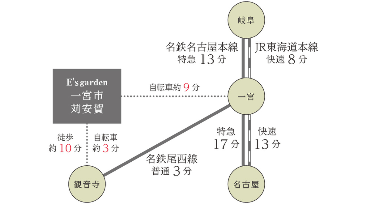 名鉄尾西線「観音寺」駅 (約740m 徒歩約10分 自転車約3分)