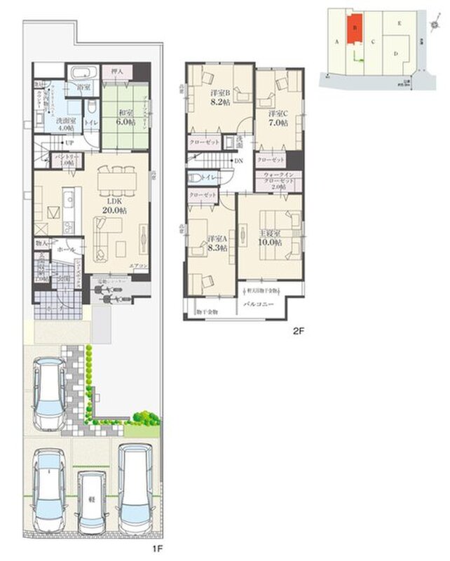 B棟 間取り 5LDK 価格 4880万円 建物面積 147.61m2(44.65坪) 土地面積 197.25m2(59.66坪) -