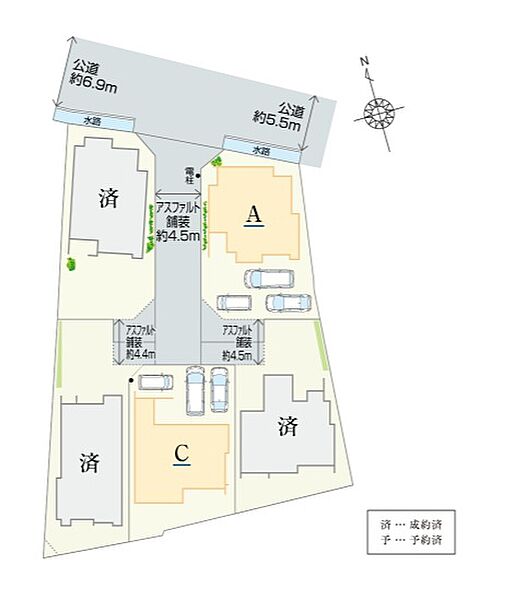 | 駐車場 | 3台 | 道路の幅員 | 北側約4.5m~約6.9m公道、私道負担有(詳細は備考) |