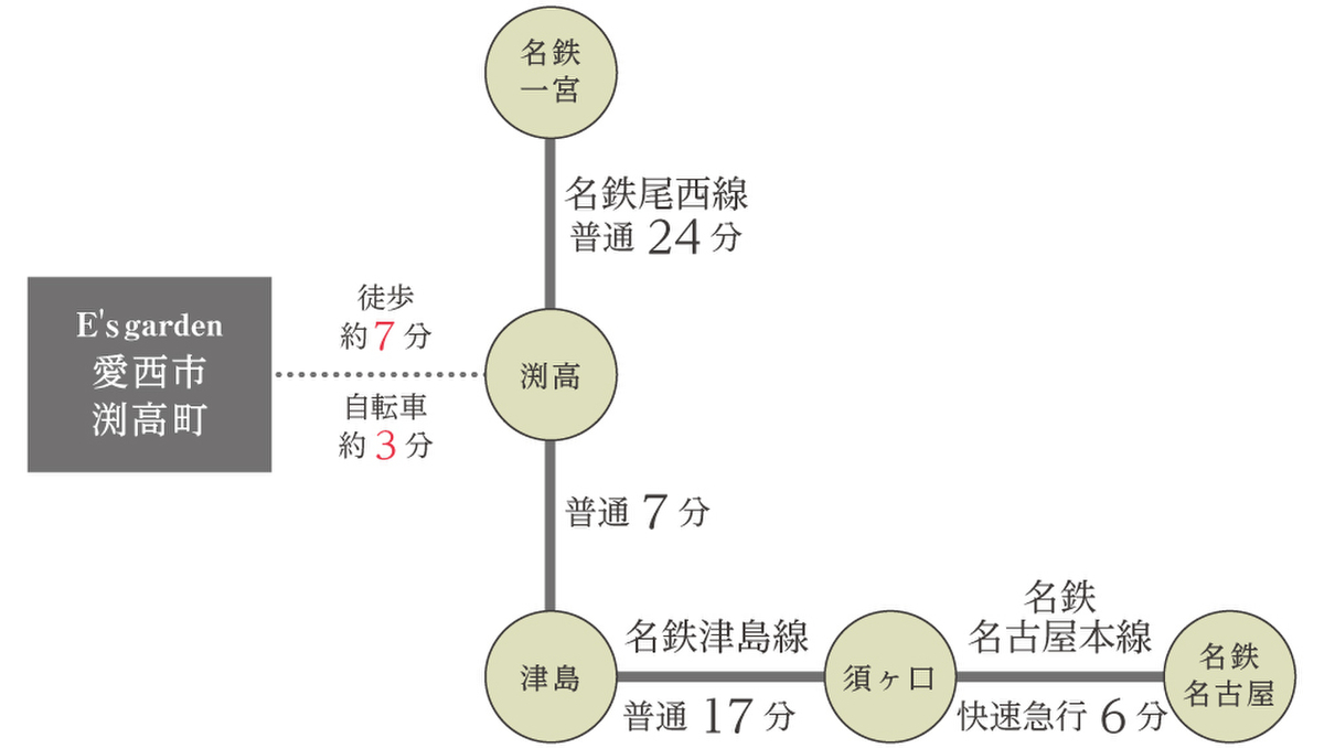 名鉄尾西線「渕高」駅 徒歩7分 自転車約3分 |