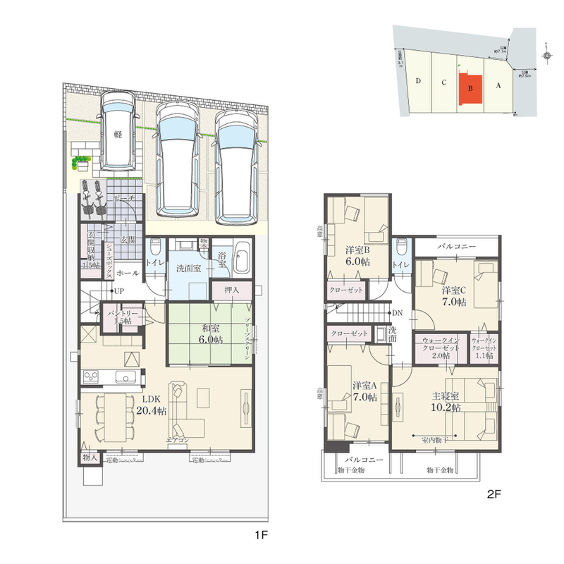 ・LDKは全棟20帖以上で、ゆとりある空間です。