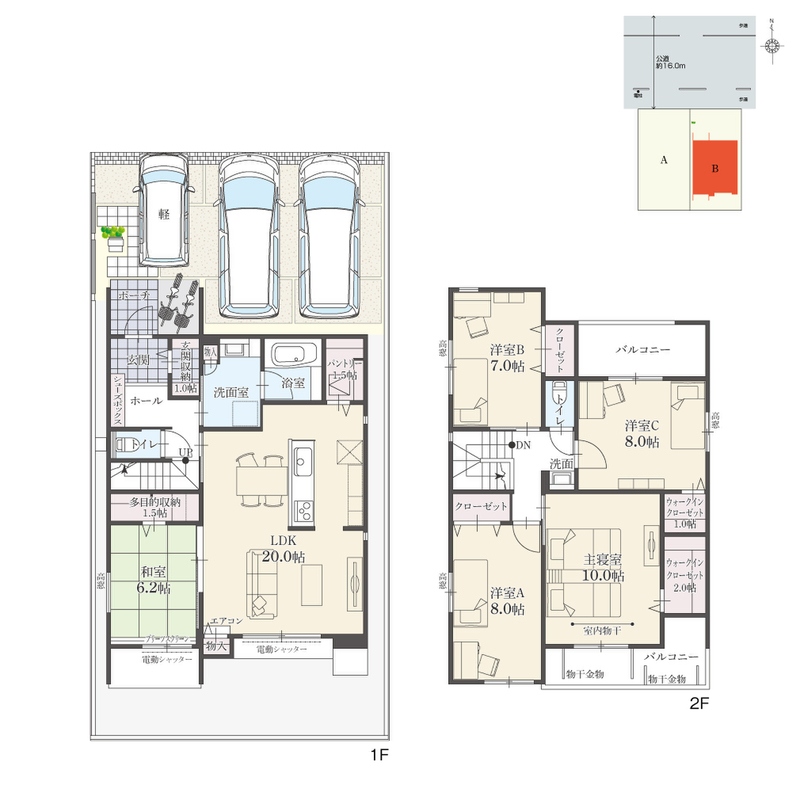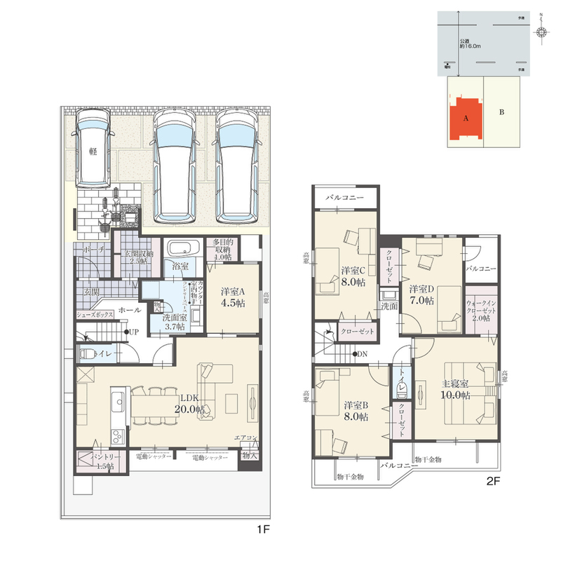| 駐車場 | 3台 | 道路の幅員 | 北側約16.0m公道 |