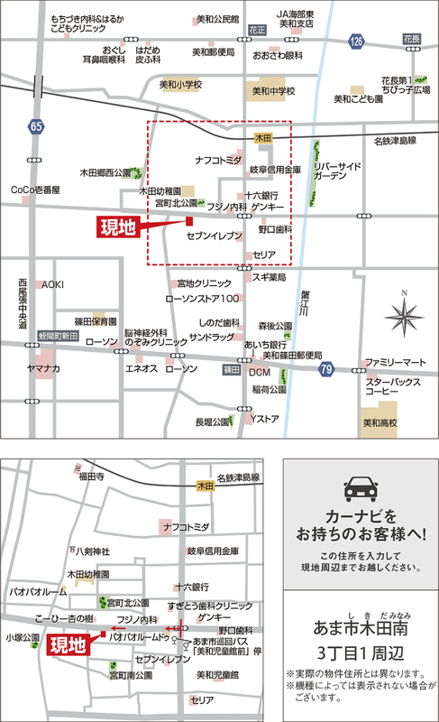 名鉄津島線「木田」駅 徒歩9分 自転車約3分 あま市巡回バス「美和児童館前」停 徒歩4分 |