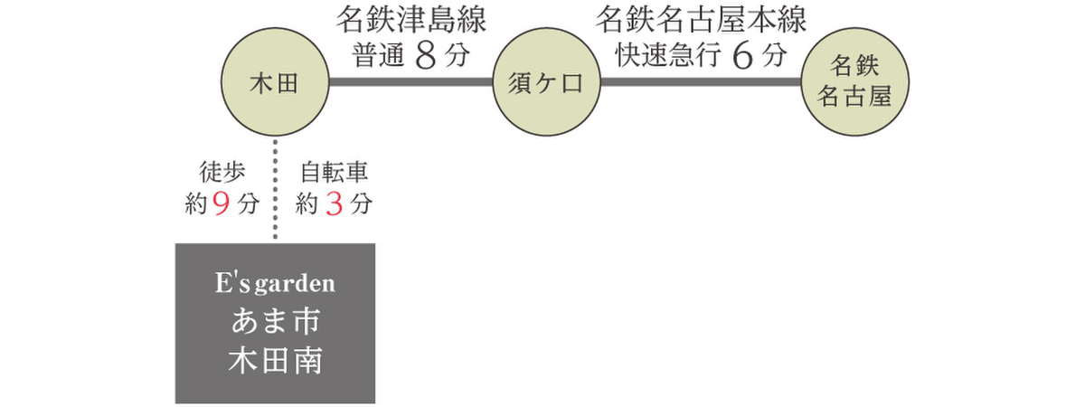 名鉄津島線「木田」駅 (約690m 徒歩約9分 自転車約3分)