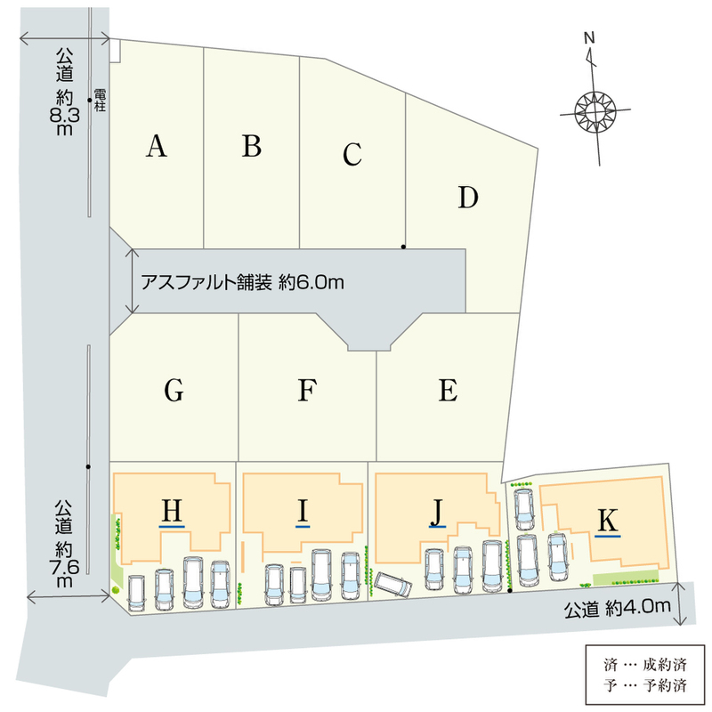 | 駐車場 | 3台 ~ 4台(H・I・J棟(4台)、K棟(3台)) | 道路の幅員 | 公道約4.0m~約8.3m、私道負担有(詳細は備考) |