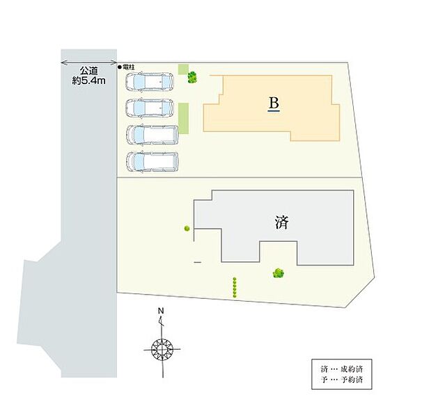 | 駐車場 | 4台 | 道路の幅員 | 西側約5.4m公道 |