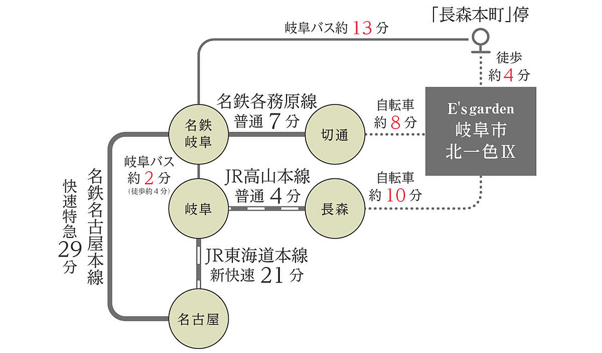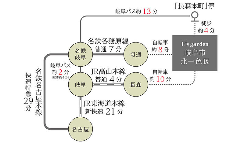 JR高山本線「長森」駅 (約2290m 自転車約10分)