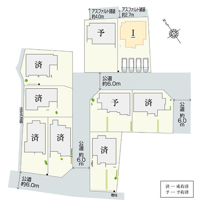 | 駐車場 | 4台 | 道路の幅員 | 公道:南側約6.0m |