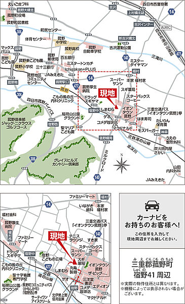 近鉄湯の山線「菰野」駅 徒歩14分 自転車約5分 三重交通バス「イオンタウン菰野」停 徒歩7分 |