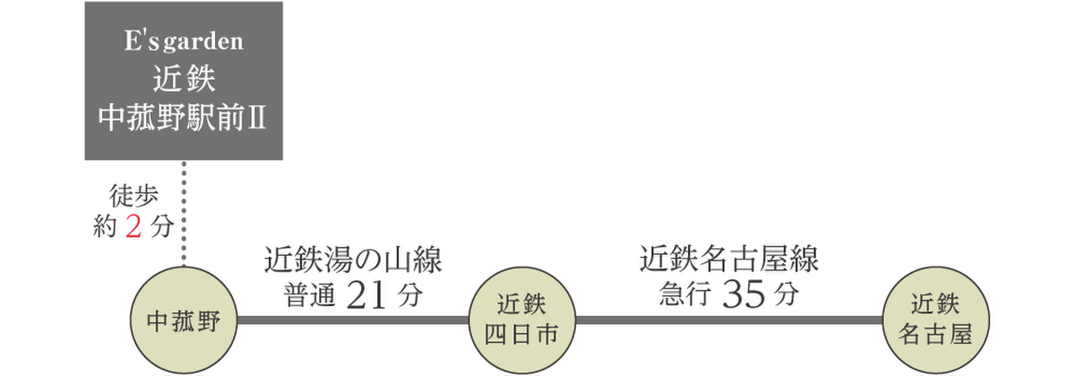 ・近鉄湯の山線「中菰野」駅・・・徒歩約2分(約120m)