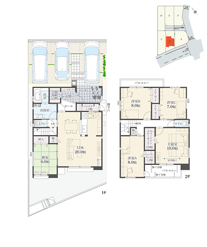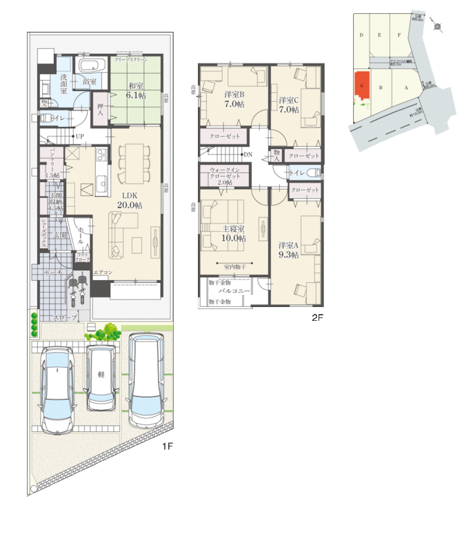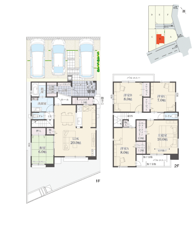 | 間取り | 5LDK | 建物構造 | A・B・C・F棟:木造瓦及びガルバリウム鋼板葺2階建、D棟:木造瓦葺2階建 |
