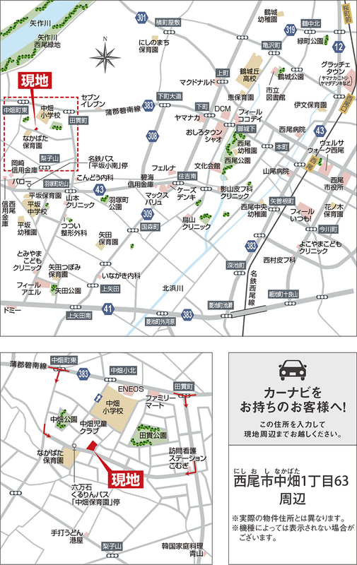 名鉄西尾線「西尾」駅 徒歩47分 自転車約15分 名鉄バス「平坂小南」停 徒歩14分 六万石くりるんバス「中畑保育園」停 徒歩1分 |