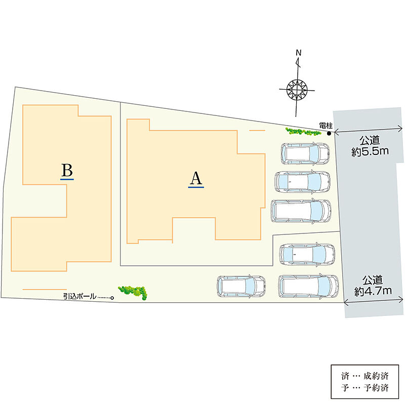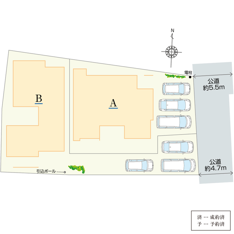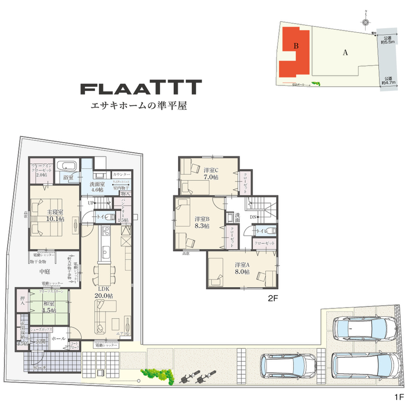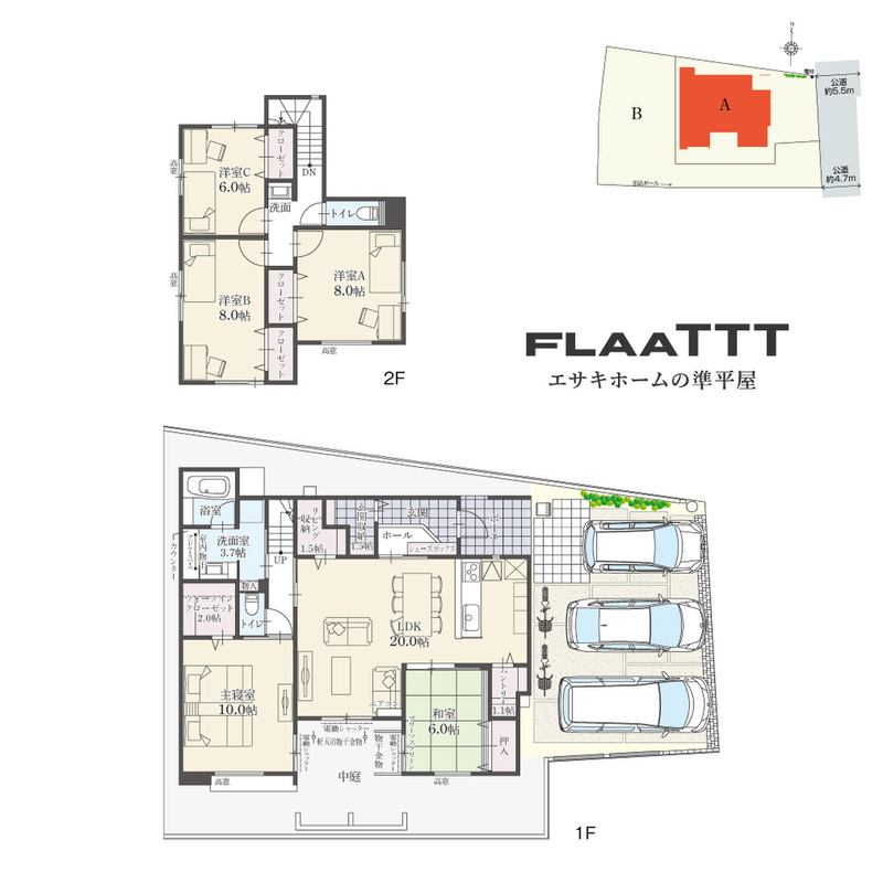 | 駐車場 | 3台 | 道路の幅員 | 東側公道約4.7m~5.5m |