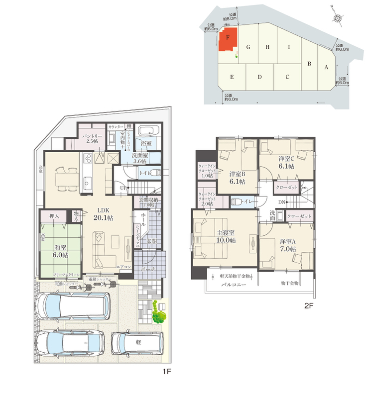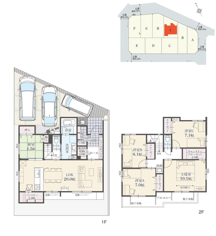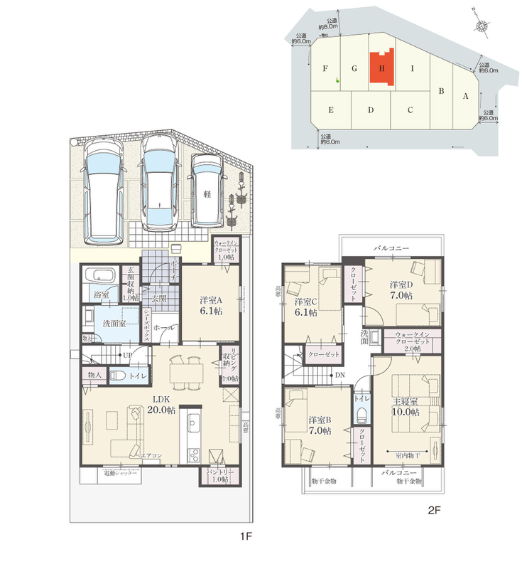 | 駐車場 | 3台 | 道路の幅員 | 公道約6.0m~約8.0m |