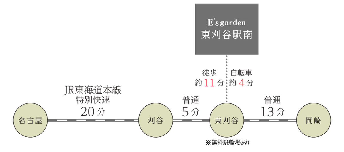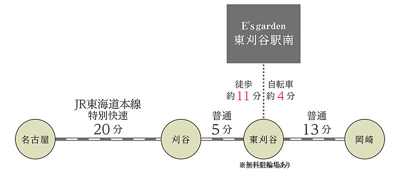 JR東海道本線「東刈谷」駅 (約850m 徒歩約11分 自転車約4分)