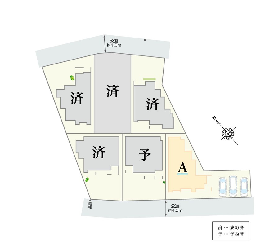 | 駐車場 | 3台 | 道路の幅員 | 南西側幅員約4.0m公道、北東側幅員約4.0m公道 |
