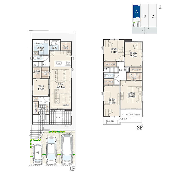 ・その他制限事項:景観法による規制有、宅地造成工事規制区域、敷地面積最低限度有、日影制限有、壁面後退有 ・諸経費が別途必要となります。詳細については係員までお問合せ下さい。 ・掲載の間取り図・区画図は計画段階のものを基に描き起こしたもので、実際とは異なる場合がございます。 ・所要時間は地図上の概測距離を80m=徒歩1分、250m=自転車1分、車は時速40kmで計算したものです。 ・駐車台数は、区画図または各間取り図に表示の自動車サイズを想定しております。車種によっては駐車台数が異なる場合があります。 ・内観写真内の家具はモデル用又はCG加工によるものであり、実際の物件には付属していません。 |