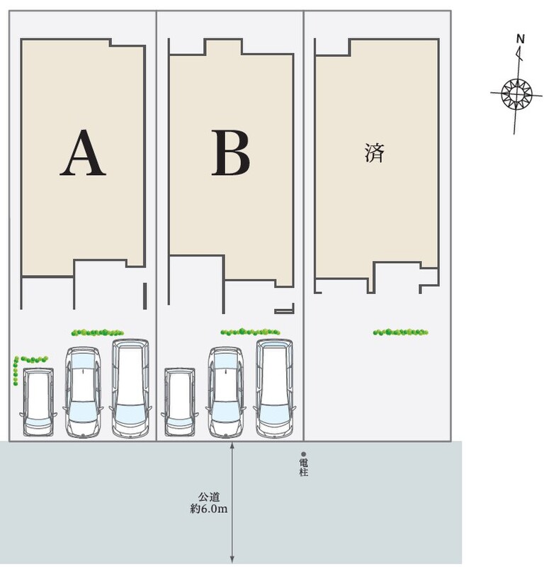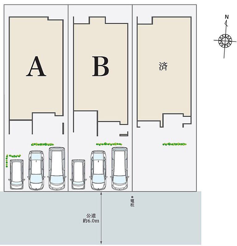 | 駐車場 | 3台 | 道路の幅員 | 南側約6.0m公道 |