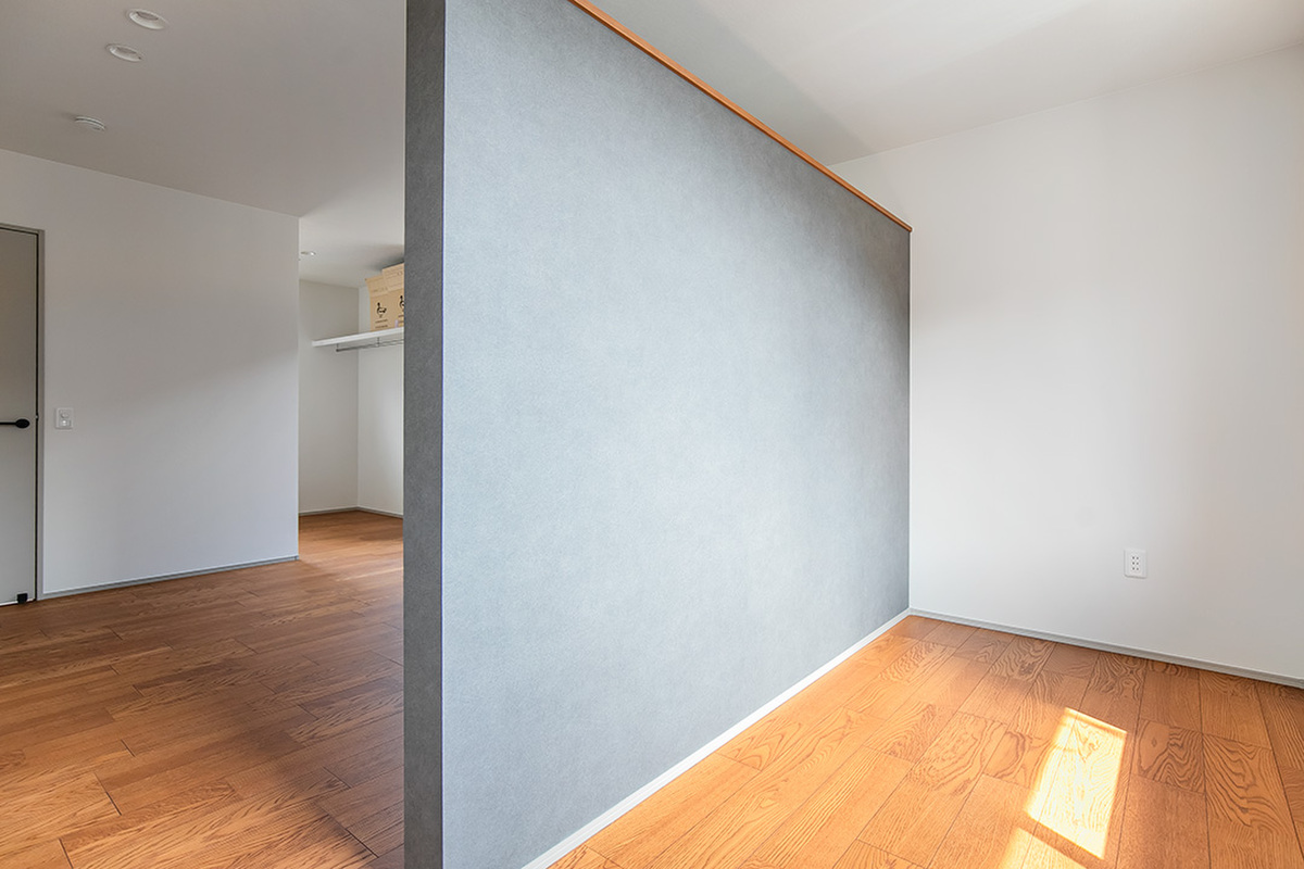 インナーテラスと主寝室を仕切る壁はあえて天井まで設けず、光がや...