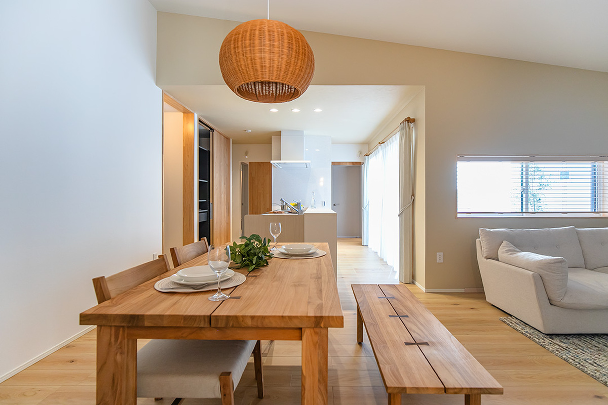 勾配天井が映える21.09帖の広々LDKは「陽だまりスペース」...