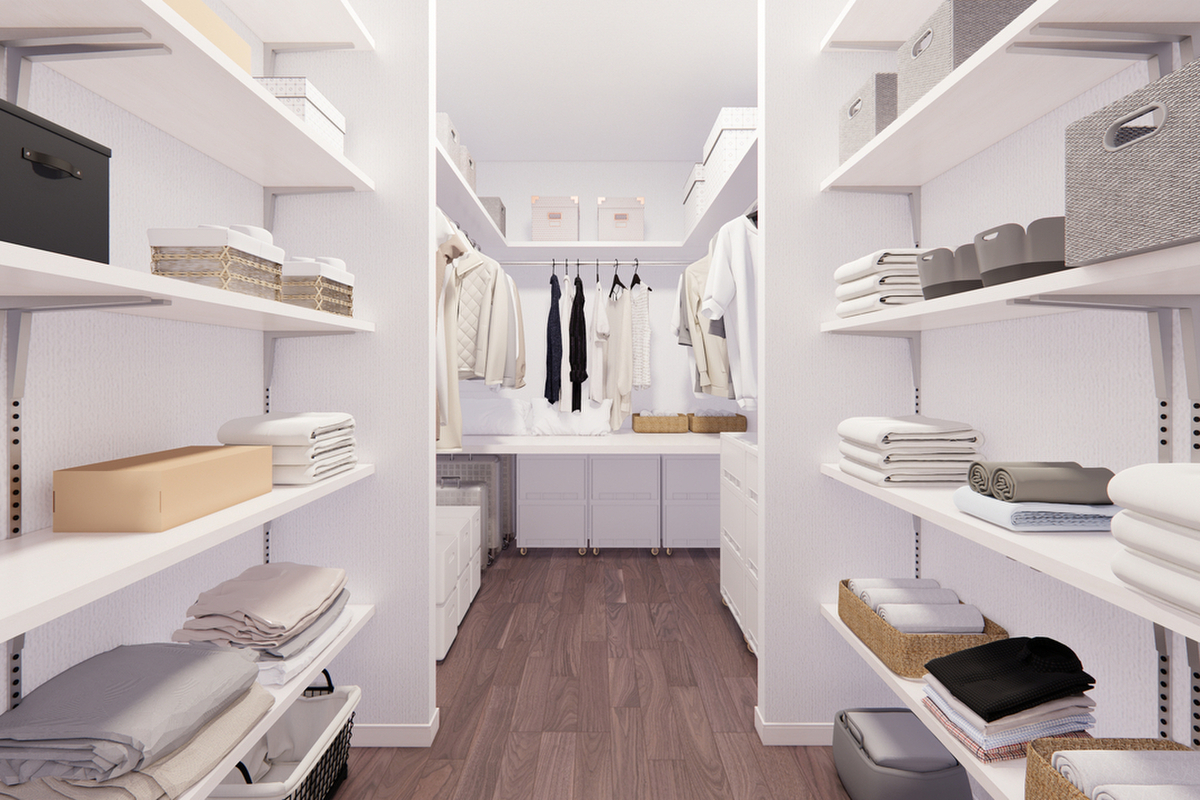大容量の収納が叶うWIC♪季節のお布団を上段に下段にはキャリー...