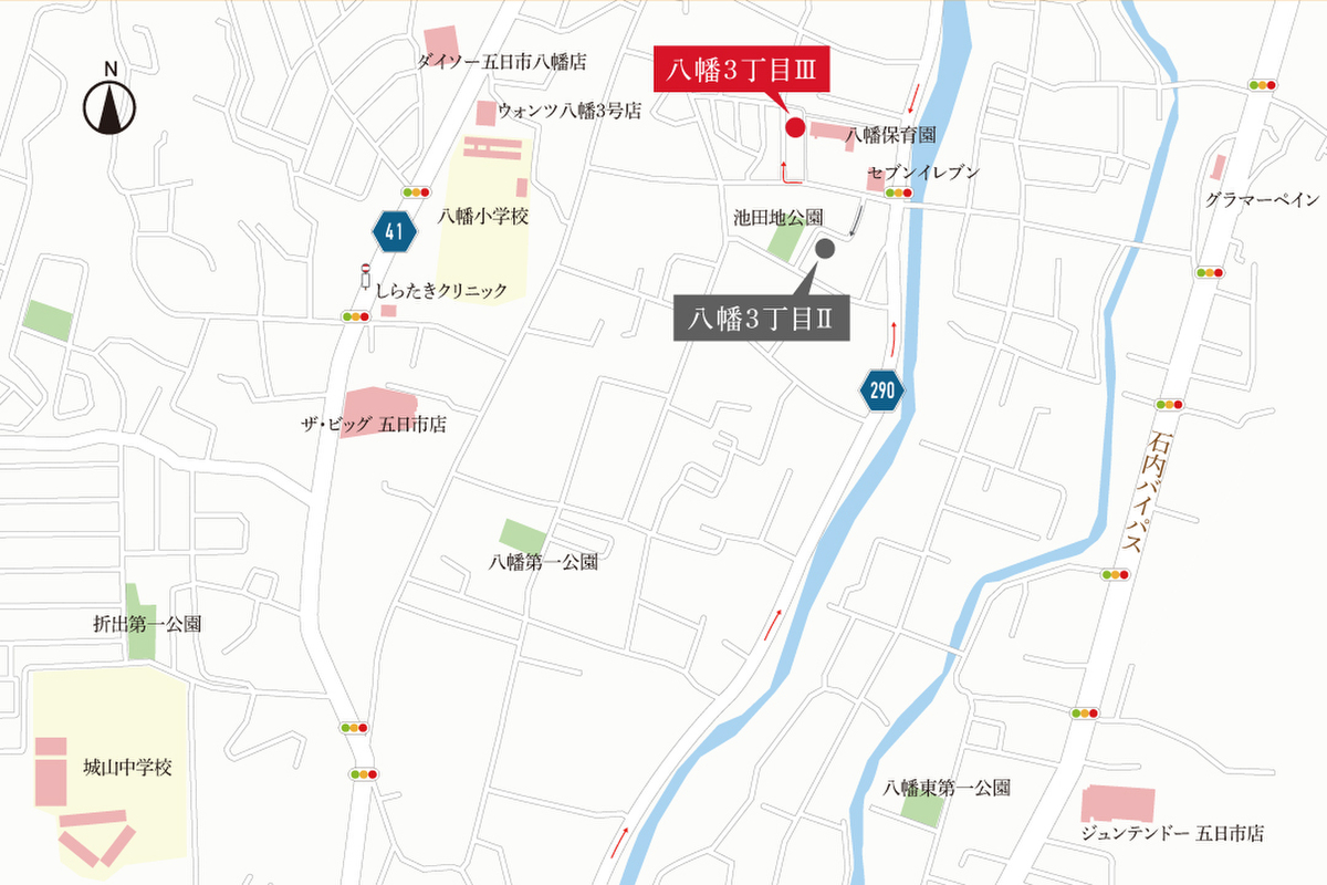 - ※地図上に表示される各種アイコンなどの情報は、おおよその所在地を表すものであり、物件・施設などの地点を保証するものではありません。