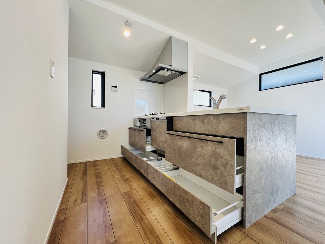 備蓄倉庫や小屋裏収納をはじめ、住まいの各所にゆとりある収納スペースを設けた、収納力豊富な間取りです。季節家電や衣替えの衣類、アウトドア用品はもちろん、防災用品や日用品のストックまでしっかり保管可能。普段は使わない物をまとめて収納できるため、居室空間を広々と有効活用できます。適材適所に収納が配置されていることで、片付けがしやすく生活動線もスムーズに。家族構成やライフスタイルの変化にも柔軟に対応でき、いつでもすっきり整った快適な暮らしを支える住まいです。収納の充実が、毎日の安心とゆとりを生み出します。