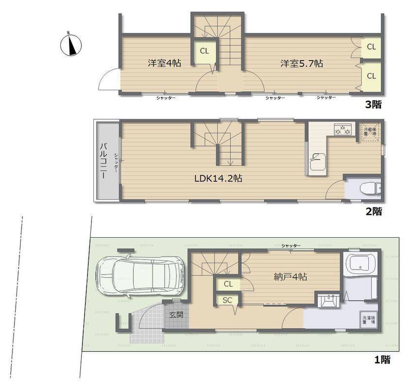 | 間取り | 2LDK+1S | 建物構造 | 木造3階建て |