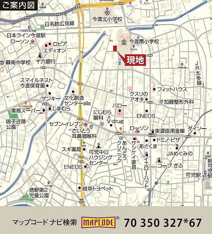 名鉄広見線「日本ライン今渡」駅 徒歩15分 JR太多線「可児」駅 徒歩21分 |