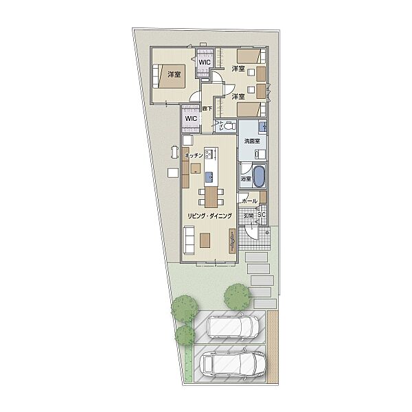 - ※完成予想図やCG合成画像は、門塀・植栽・庭・外観等、実際とは多少異なる場合があります。