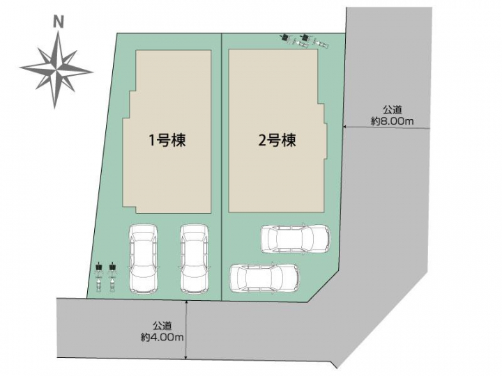| 駐車場 | 2台 | 道路の幅員 | 南4.0m公道、東8.0m公道 |