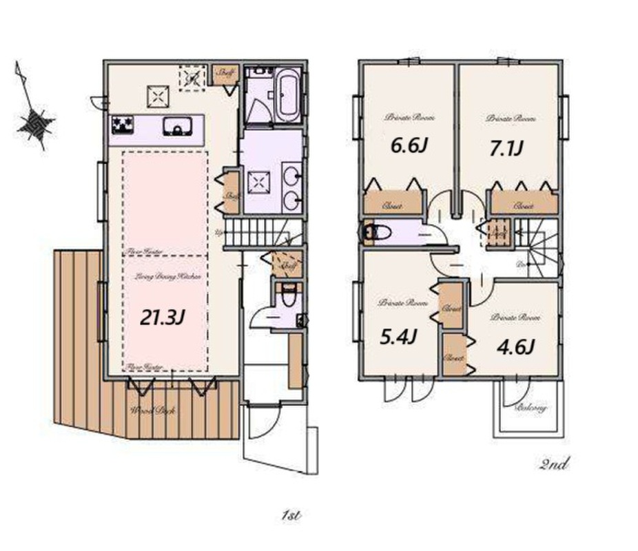■南×西の2面を確保したウッドデッキ付き4LDK