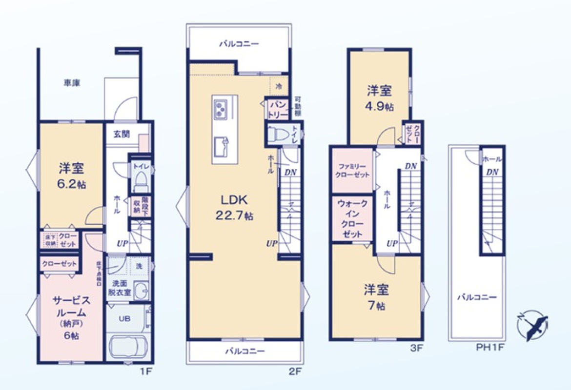 | 間取り | 4LDK+RB | 建物構造 | 木造3階建て |