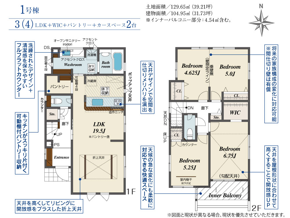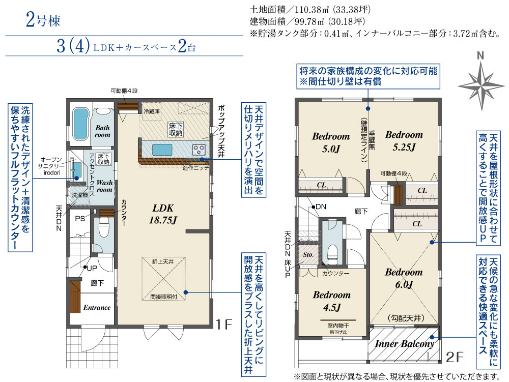 | 建物面積 | 99.78m2(約30.18坪)~104.95m2(約31.74坪) | 土地面積 | 110.38m2(約33.38坪)~129.65m2(約39.21坪) |