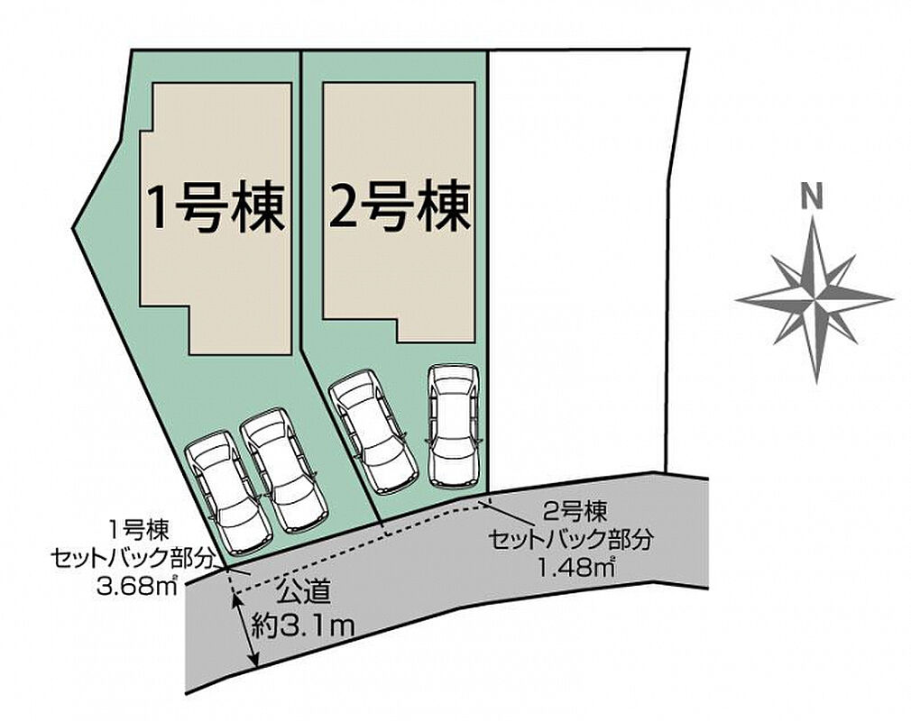 | 駐車場 | 2台 | 道路の幅員 | 南3.1m公道 |