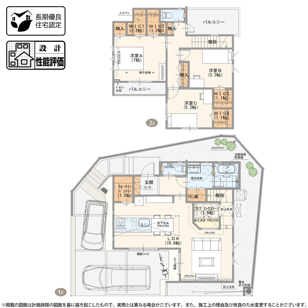 - ※完成予想図やCG合成画像は、門塀・植栽・庭・外観等、実際とは多少異なる場合があります。