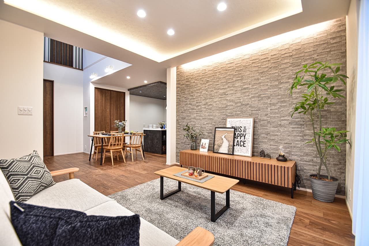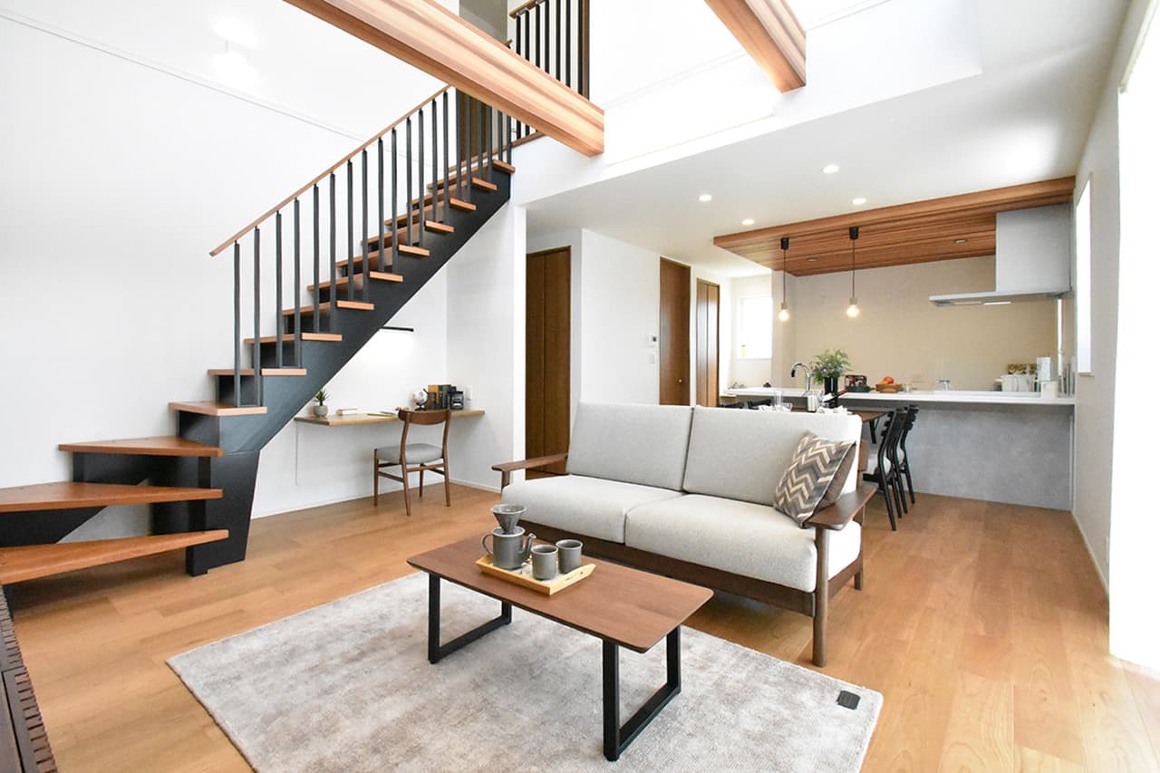 1階のフローリングには家族の健康的な暮ら...