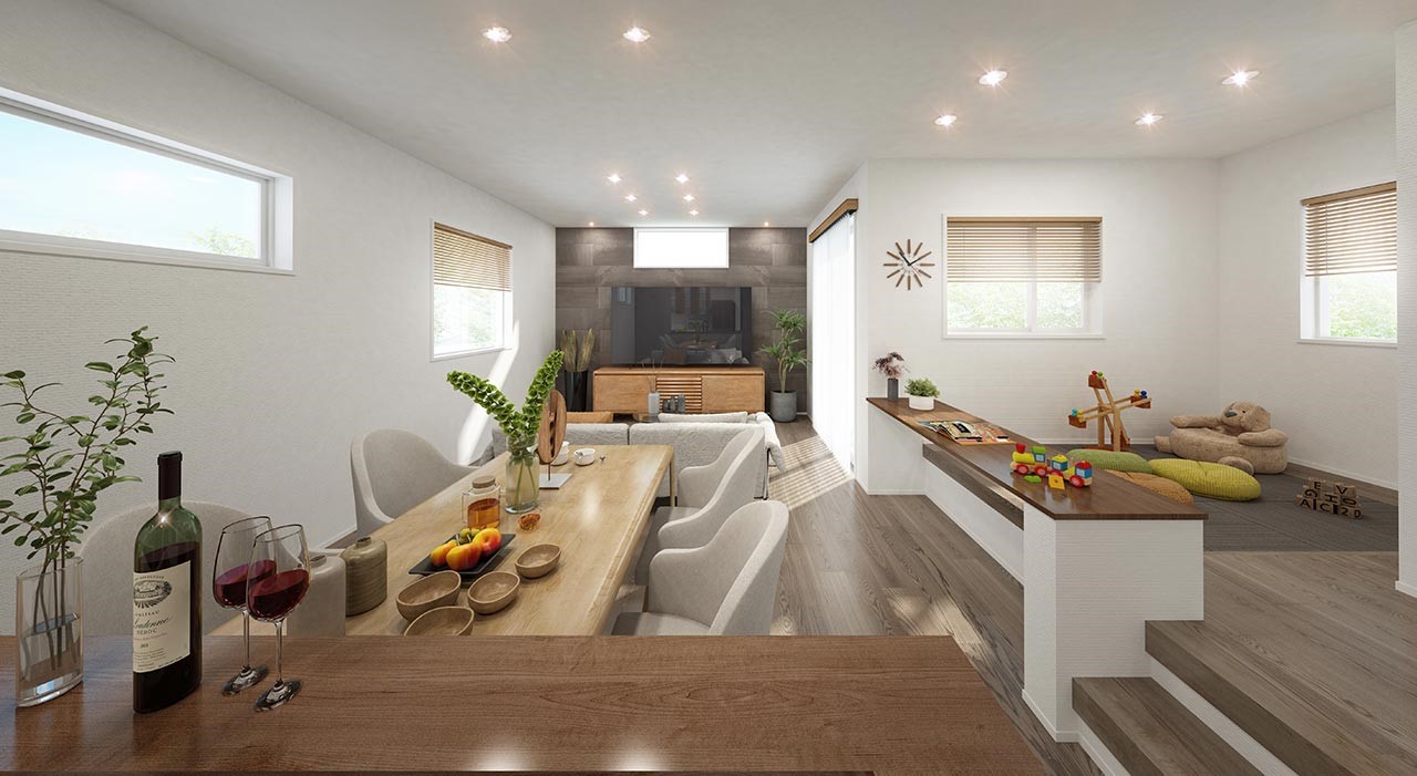 - ※完成予想図やCG合成画像は、門塀・植栽・庭・外観等、実際とは多少異なる場合があります。