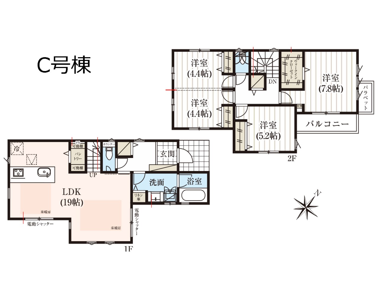 | 建物面積 | 102.68m2~104.33m2 | 土地面積 | 148.74m2~174.8m2 |