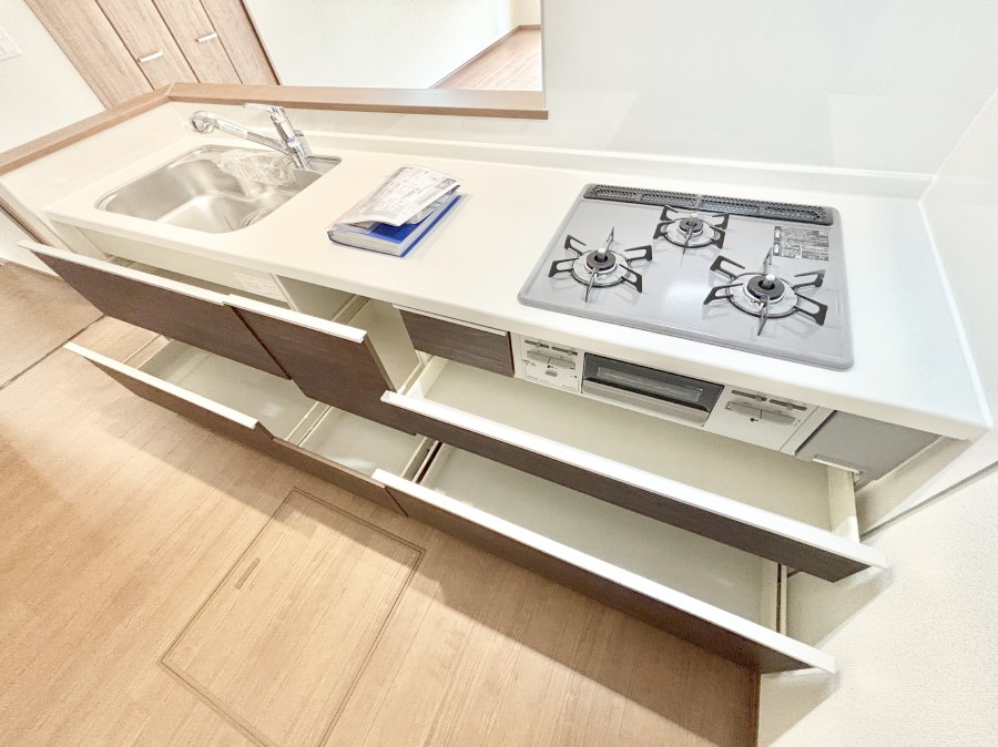 ◆南向きの明るい住まい ◆家族の会話も弾む対面キッチン ◆雨の日のお洗濯にも大活躍な浴室乾燥機付