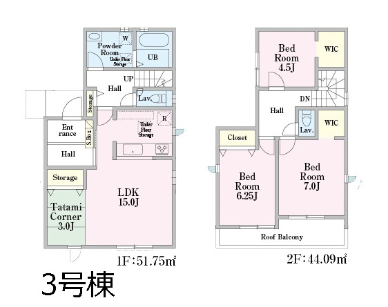 | 建物面積 | 86.94m2~95.84m2 | 土地面積 | 137.16m2~144.59m2 |